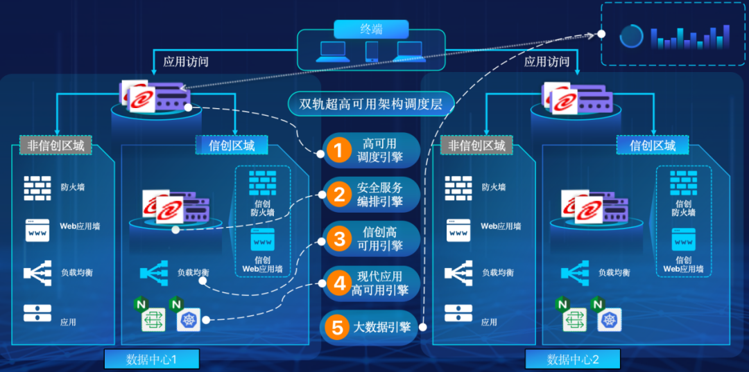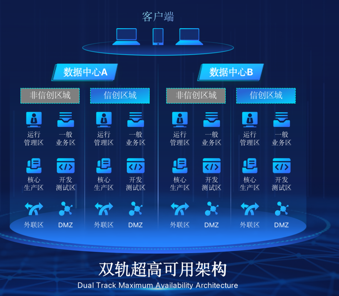 神州今年会在企业面临自主创新IT基础重构过程中,推出的全新架构双轨超高可用架构(简称DTMAA),在双活数据中心的分区调度基础上,添加每个数据中心内信创域和非信创域的分域调度,来实现分区分域协同的多活双轨超高可用。