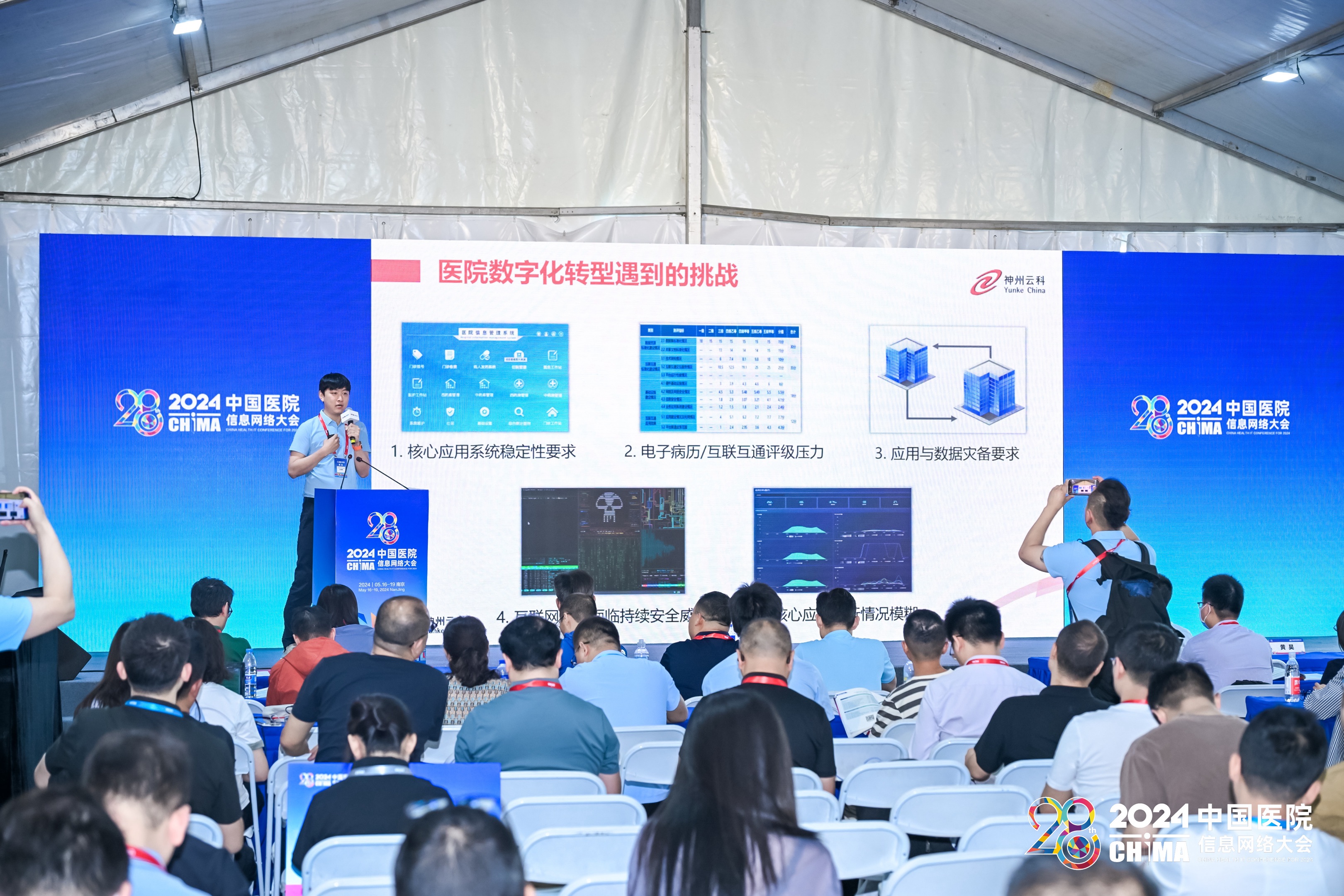 2024年5月17-19日,第28届中国医院网络信息大会(CHIMA2024)在南京圆满落幕。本次大会以新质生产力理论为指导,以深化应用,融合创新,用信息技术赋能医院高质量发展为主题,邀请国家卫生健康委相关司局领导、两院院士、国内外医疗卫生信息化领域知名专家学者、领军人物做主旨报告。在这场医疗信息化的年度盛会上,神州今年会会上携其“保障医院核心系统健康无虞”主题演讲精彩亮相,成为展会的一大亮点。