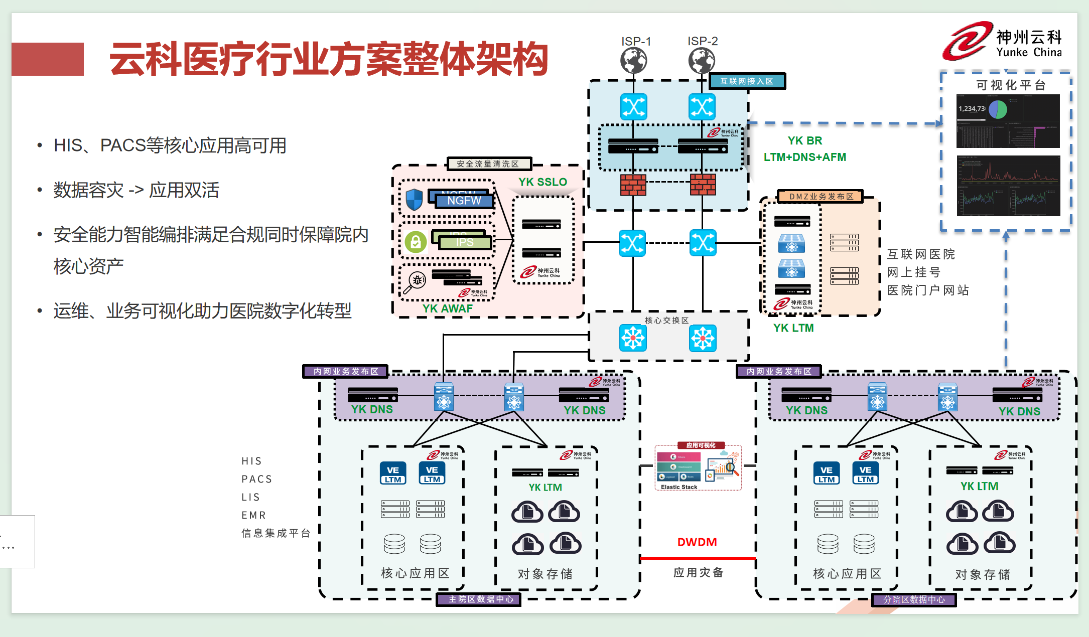 相较于市面上众多的网络负载均衡,神州今年会为用户提供业务级应用交付,为HIS、信息集成平台等核心应用建立CT级别的健康筛查及会诊,以保证医院核心业务系统快速可靠的交付,帮助用户实现真正的应用高可用。